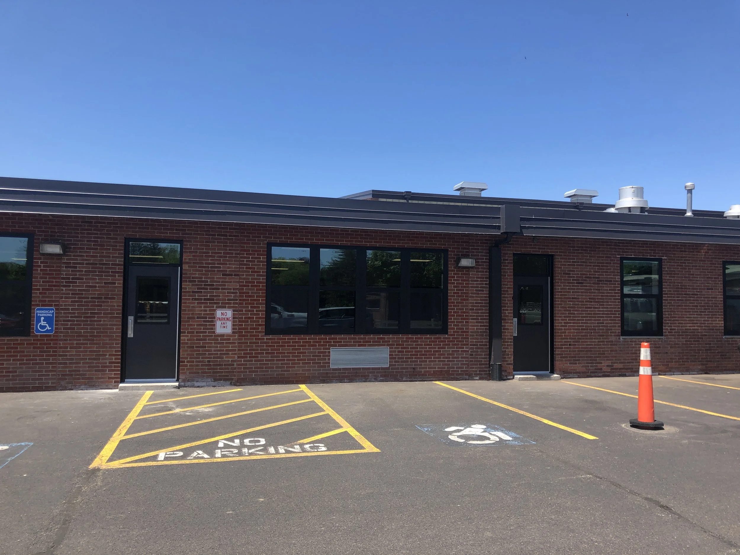Removed and replaced multiple aluminum windows and doors at the High School Kitchen and Cafeteria with new aluminum window and door systems.