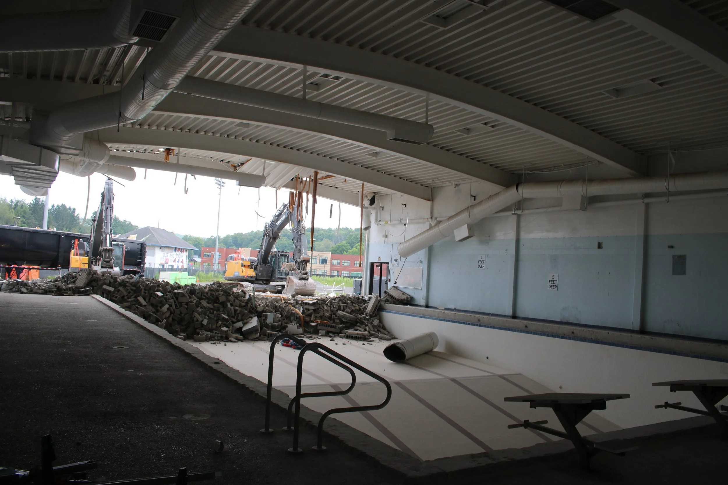 Demolition of a 10,000 Sqft swimming pool and locker room primarily constructed of concrete, masonry, and steel with the footprint of the structure surrounded on three sides with active classrooms, gymnasium, and main corridor.
